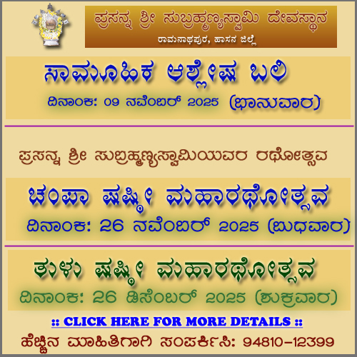 Ramanathapura is one of the major hobali town in Arakalgud Taluk of Hassan District. The place is situated on left bank of river cauvery. Ramanathapura is one of the most prominent pilgrimage center in Karnataka. The place is believed as holy place from many centuries and hence called as "DAKSHINA KAASHI". There are many temples in Ramanathapura. Hence Ramanathapura is also termed as "TOWN OF TEMPLES". The important temples of Ramanathapura are Prasanna Sri Subramanya Temple, Sri Rameshwara Temple, Sri Agasteshwara temple, Sri Pattabhi Rama Temple, etc.,